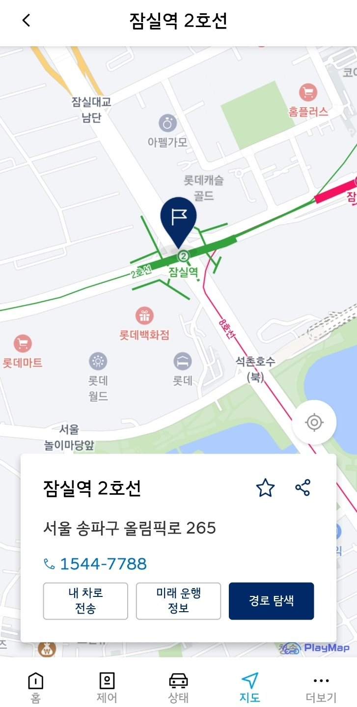 앱 아래쪽에 '지도'를 누르고 검색한 정보를 차에 미리 전송해 둘 수 있다.