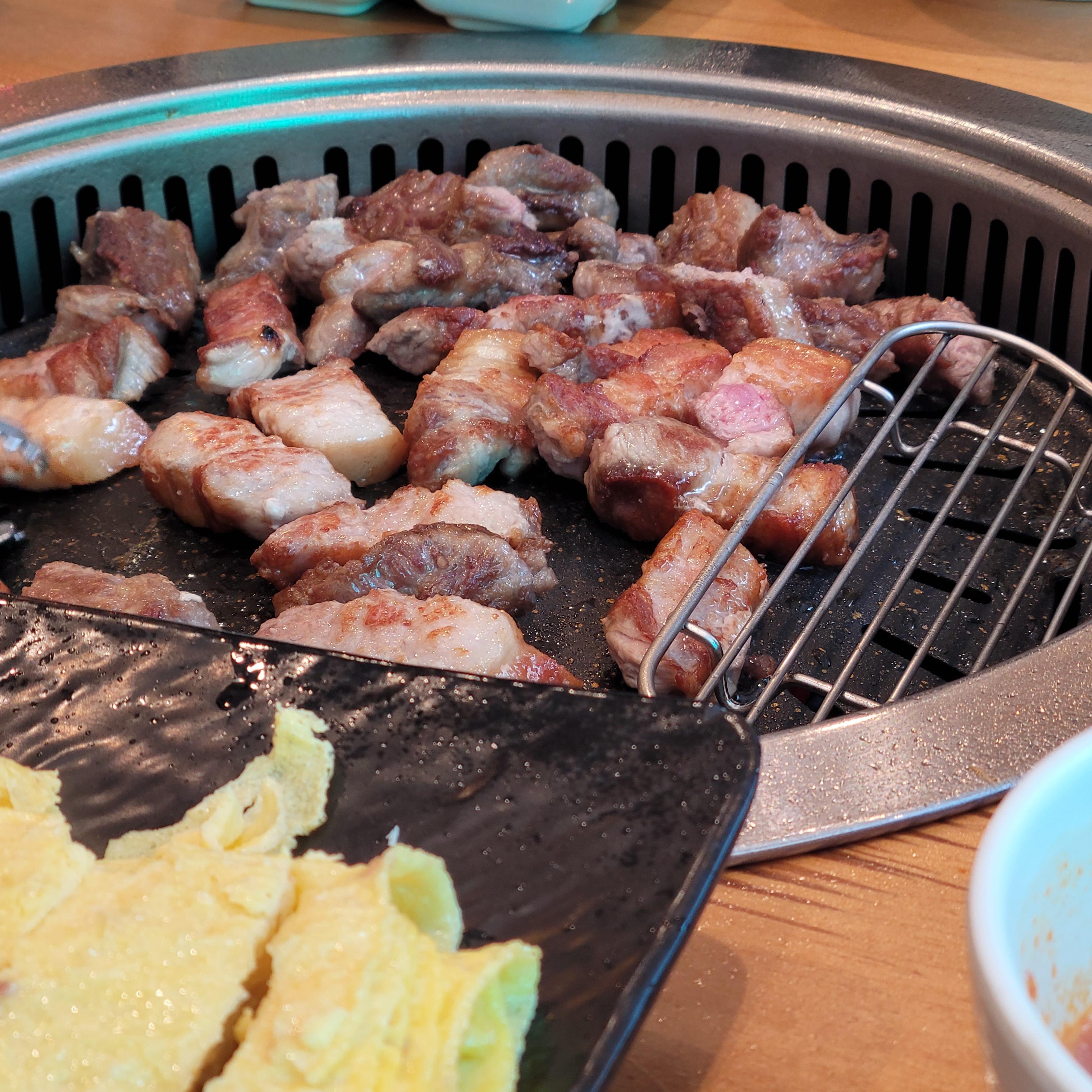 여기 좋은점이 예약이 쉽고(룸도 가능) 고기가 좋은건지 맛있다. 고기를 초벌을 해다줘서 빨리먹을수 있기도 하고, 김찌랑 계란이 있다고 고기양이 적냐 하면 그것도 아니라는점이 정말 감동.. 점심에 보통 13,000원 쓰지는 않지만 고기 먹고 싶을땐 최적의 장소라고 생각한다. *근데 혼밥은 안됨 2인이상*